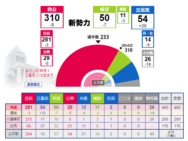 第48回衆議院選挙 終わりましたね 仕事が忙しくて なかなか更新できませんでしたが 第48回衆議院選挙 終わりましたね (2週間以上経ってしまいましたが ^_^;) 希望の党 や 立憲民主党 などなど 紆余曲折ありましたが 結果、 自民圧勝でしたね ^_^; この選挙結果が 民意をすべて反映しているはわかりませんが現時点での評価ということですね また 若い世代に自民推しが多いようですね 良い 悪い は別として 若い世代の人たちが選挙に行くことは素晴らしいことですね!(^^)! ぜひ 今後の政治に期待しましょう!!